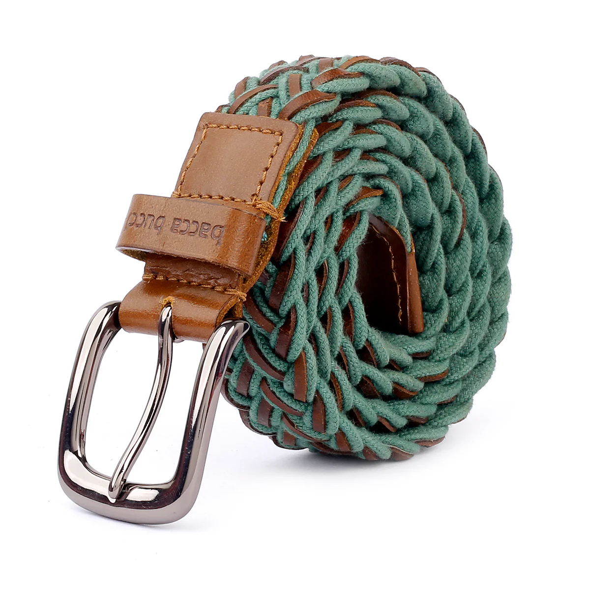 Bacca Bucci Italian Woven leather and Cotton Elastic braided belt for men with Alloy buckle